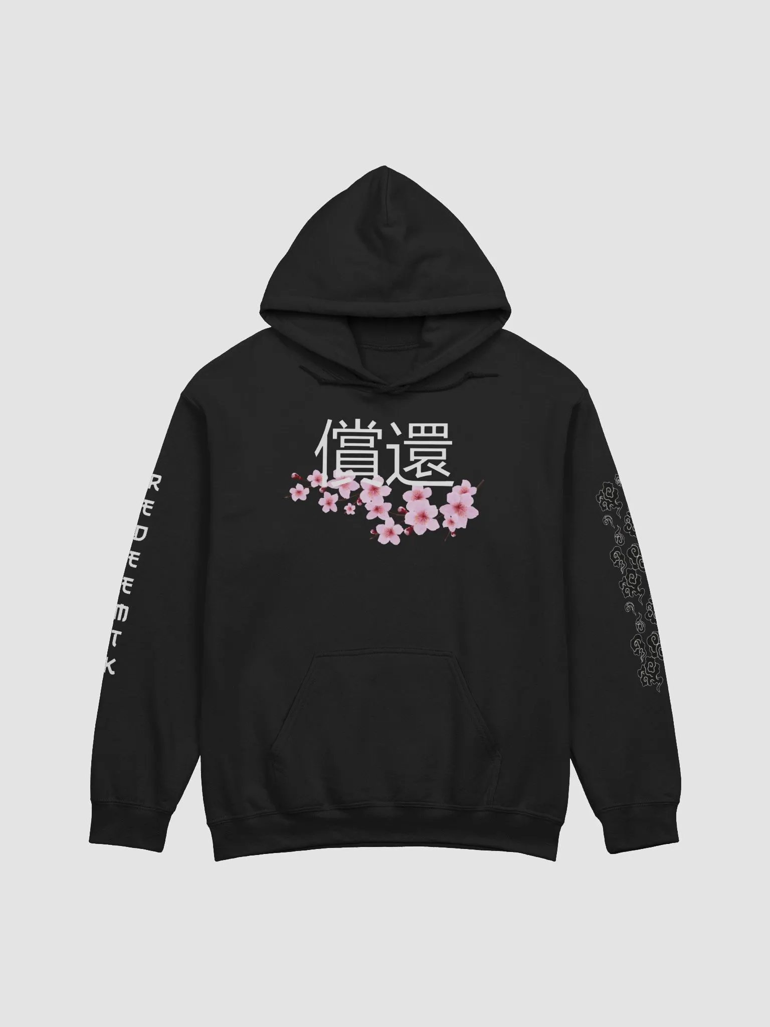 "Redemption" in Japanese, with a pink Japanese cherry blossom branch. Available in 5 colors